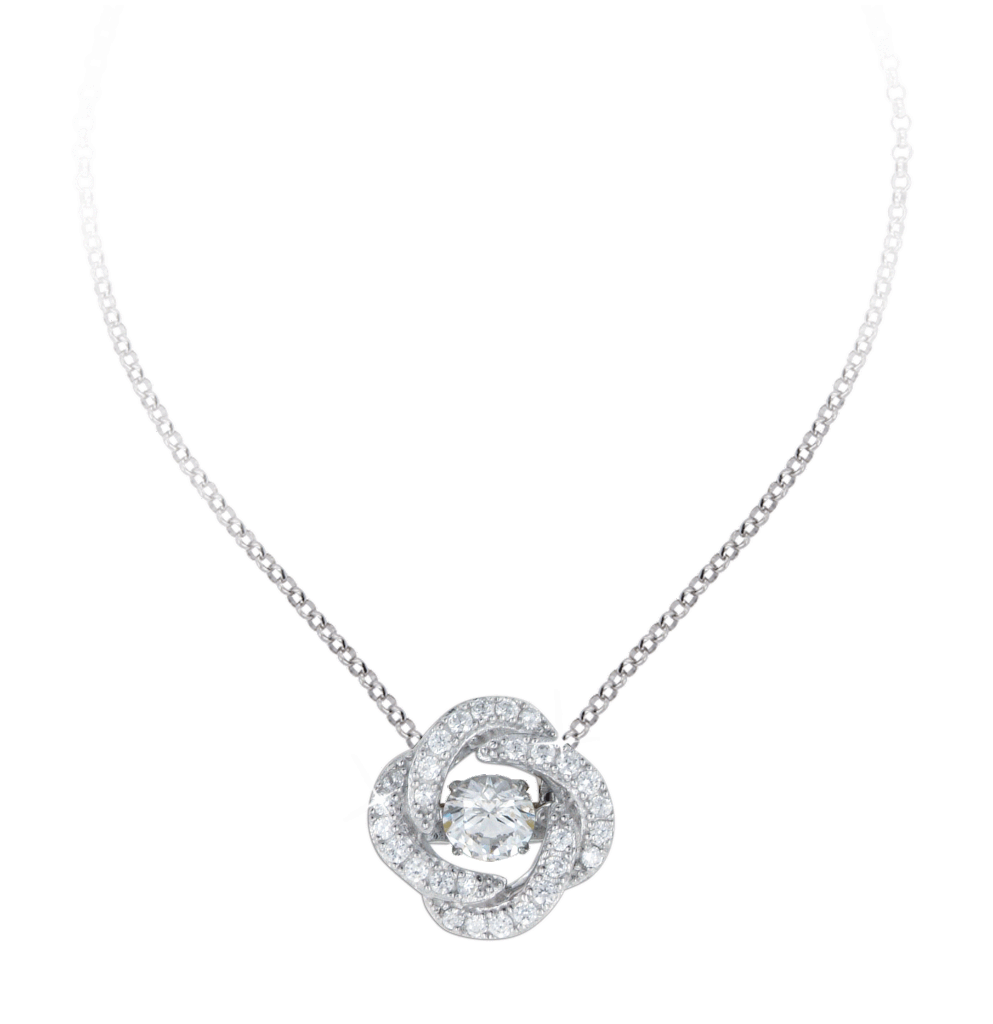 - The beautiful Love Knot is crafted with brilliant 14k white gold over stainless steel, and swings from an adjustable cable chain, fastened securely with a lobster clasp. The center cubic zirconia crystal measures 6mm in diameter, and is surrounded with smaller cubic zirconia, showcasing added sparkle and shine to this gorgeous gift. You must see it for yourself!