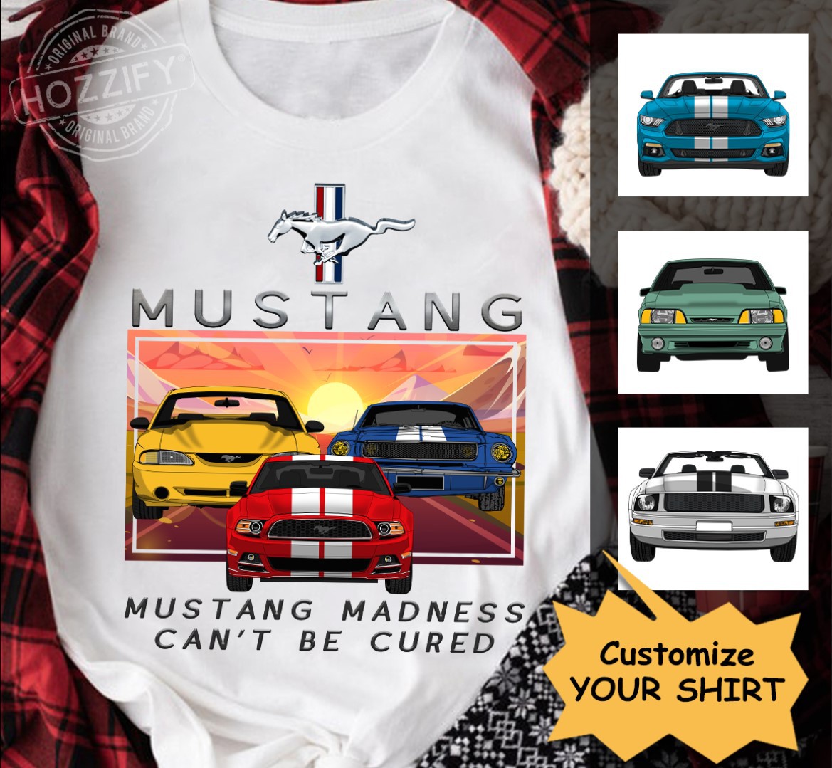 Ford Mustang Models GT Convertible Classic Mustang Madness Can’t Be Cured Custom Funny Gift for Car Guys personalized gildan t-shirt – BT – 6097356