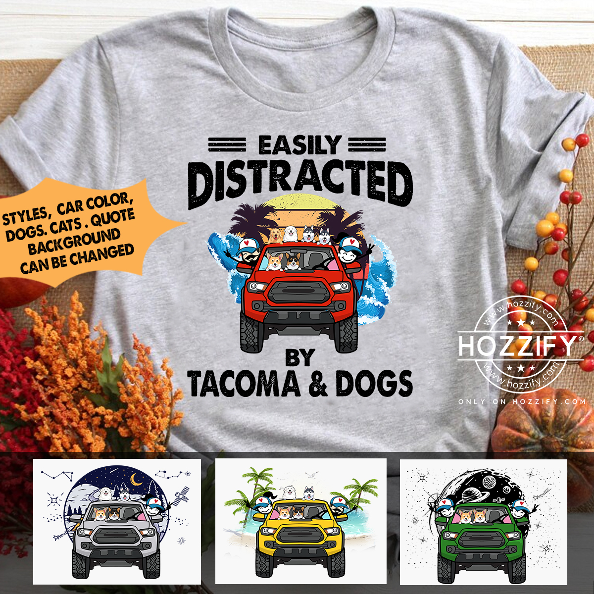 Toyota tacoma dog cat pet easily distracted by tacoma and dogs personalized t-shirt perfect gift idea funny custom gift – HD – 0869179