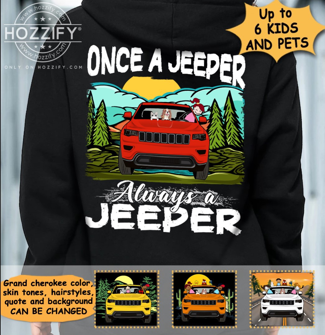 Jeep grand cherokee once a always a jeeper jeepaholic jeep girl jeep man dog cat duck personalized back pullover hoodie perfect gift idea funny custom gift – GG
