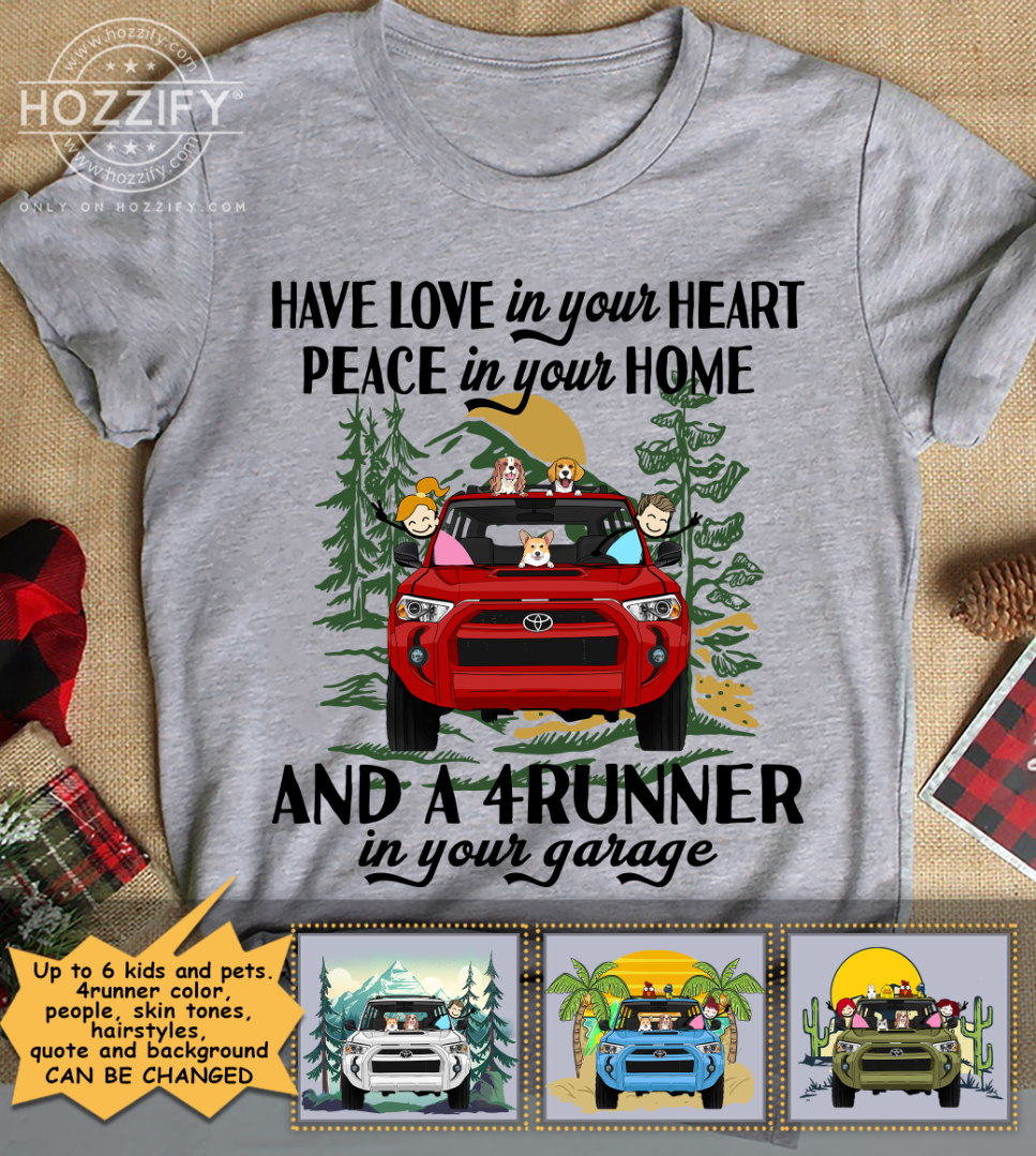 Toyota 4runner 2021 have love in your heart peace in home and a 4runner in your garage add names personalized t-shirt perfect gift idea funny custom gift – GG – 9133889