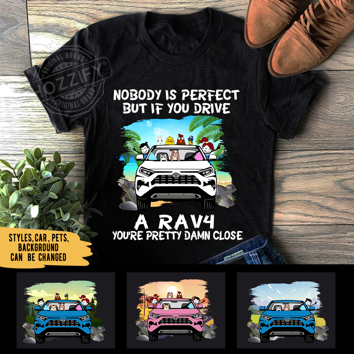 Toyota RAV4 dog cat pet nobody is perfect but if you drive a RAV4 you pretty damn close dark version personalized t-shirt perfect gift idea funny custom gift – NH-5511816